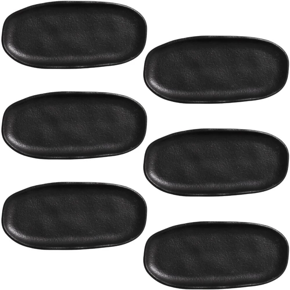 Kit 6 Travessas Rasas 16,5x8cm Cerâmica Preta